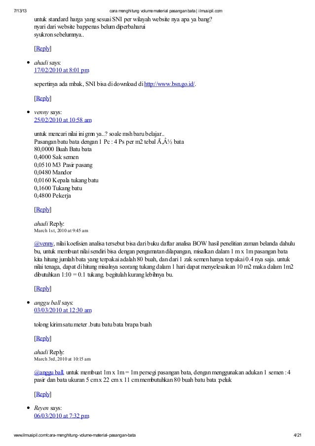 Cara menghitung volume material pasangan bata ilmusipil Sumber : www.slideshare.net